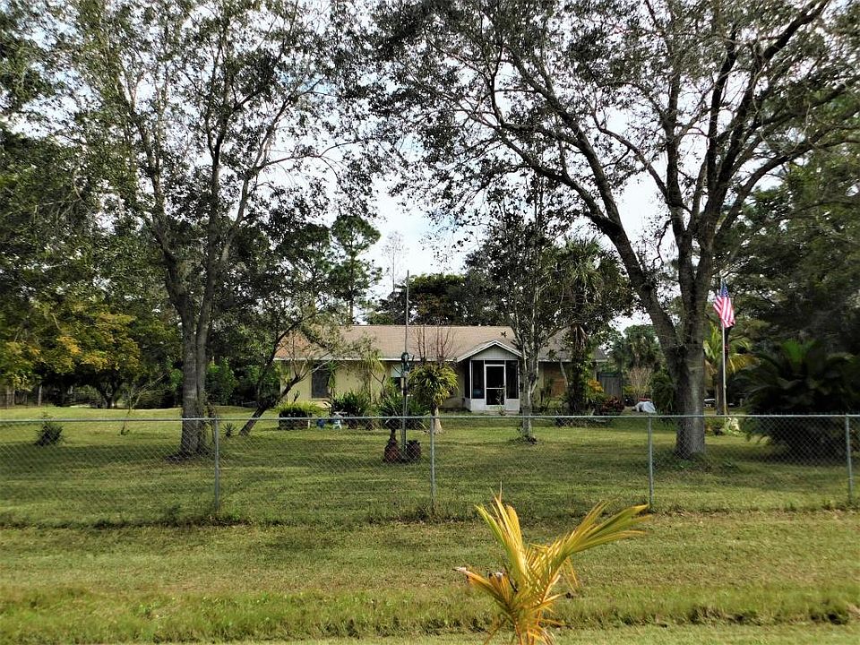 Nice two bedroom, two bath home with a huge corner lot, 1.23 acres of fruit trees and hardwoods! Pond is stocked with Perch, Crappies and has turtles. Totally fenced in yard. Each bathroom has a hot water heater. Anderson bay window with seating area. Country living but close to everything. Equestrian friendly area. Close to Abacoa golf club, Rodger Dean Stadium and access to River Bend park. Home is about 9 miles to beach, 8 miles to the Gardens Mall and 3 miles to I-95.