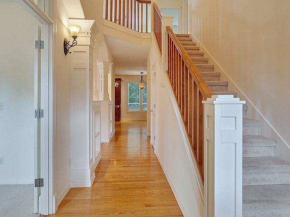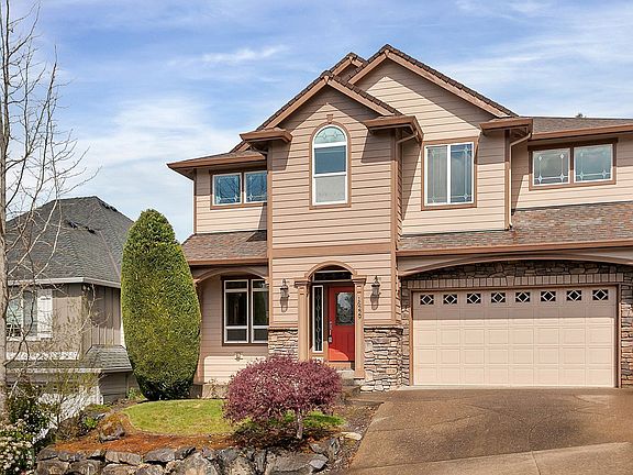Located in Tigard, this beautiful home on Bull Mountain features custom craftsmanship including built-ins, columns, and intricate detailing throughout. Kitchen boasts cherry cabinets, granite counters, island, SS appliances, and dining nook open to the family room. On the main you'll find a formal dining room, half bath and large office. Upstairs the master suite has a gorgeous double sided fireplace connecting to a nursery/sitting room. There are also 3 huge bedrooms, a full bath, and laundry room upstairs.