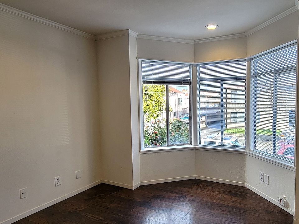Spacious upper level apartment in Victorian duplex building with lots of natural light, spacious rooms and lots of closet space. Large kitchen with dishwasher, living room with large bay windows, and dining room. Laminate floors. Bathroom with tub. Washer and dryer in unit. Shared back yard and extra storage structure in rear of building, both shared with the other unit. Off street parking spot. Safe neighborhood, close to grocery stores and restaurants. Tenant is responsible for PG&E and water, landlord pays garbage. Tenant pays PGE and water. Owner pays garbage. Pets are allowed, with landlord approval.