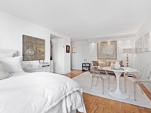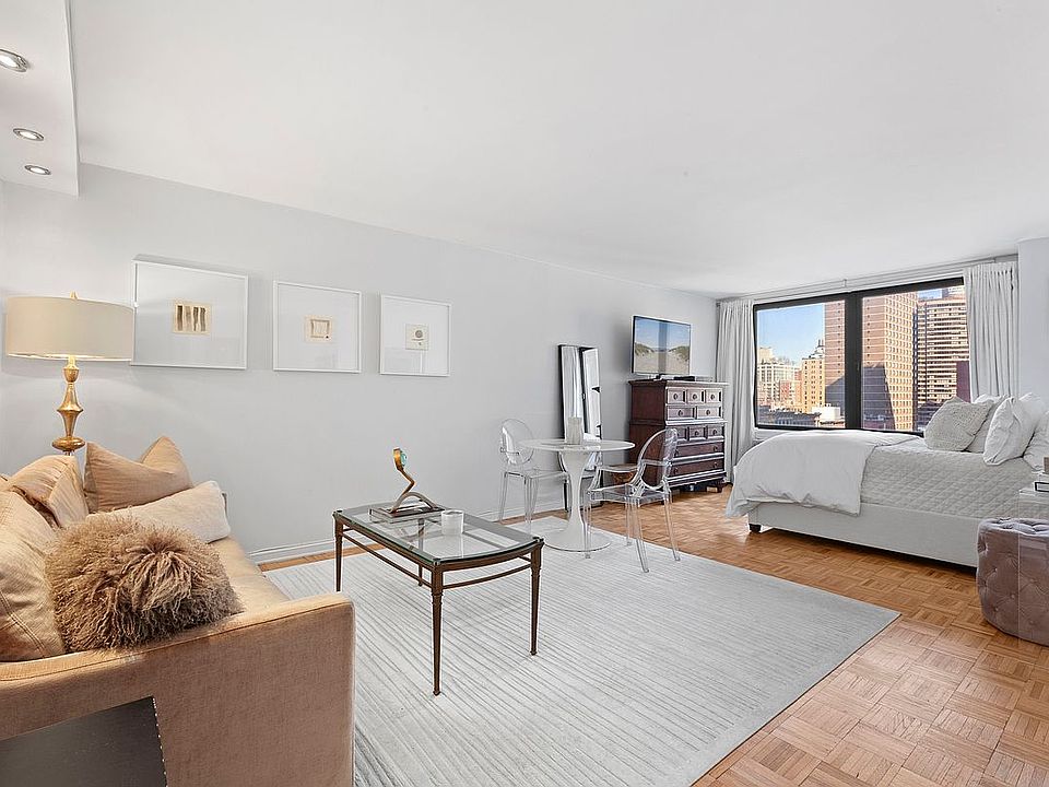 CLOSED & SOLD! Oversized 528 sq ft studio in Ruppert-Yorkville Towers. Upgrades include a dishwasher, partially opened kitchen, soffit lighting, ELFA walk in dressing room. Northern views from 2 large windows, flexible layout for furniture placement. Hardwood oak floors, thru-wall AC. Low monthly CC includes all utilities. Full service 24-7 DM condo, private playground, package room, laundry, BBQ roof terrace, NYSC gym onsite, parking garage. Cats OK, sorry no dogs. Shown by appointment only.