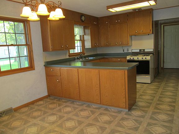 This rambler features four bedrooms with a non-conforming possible fifth bedroom or office in the basement. The spacious living room leads to the eat-in kitchen. Besides a full bath on the main floor, there is a 1/2 bath conveniently located from the garage and back yard. The steel siding, house wrap, windows and front entry were done in '00, shingles in '08. Other improvements include a radon mitigation system in '13, heat recovery system, sump pump and drain tile system installed in '13. The fenced back yard has a patio and alley in the back. This home is priced to sell and ready for you to decorate the way you'd like!