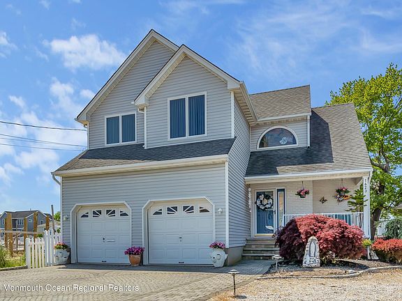 A boater's lifestyle awaits in this 3 bedroom, 2 1/2 bath year-round or summer home in Sunshine Harbor. Newer kitchen features custom cabinetry with glass-front accents, granite counter tops, peninsula and Stainless Steel appliances. Enjoy water views while dining inside or dine al fresco on the large composite deck with retractable awning. Living room has vaulted ceiling, gas fireplace and sliders opening to the deck. Master bedroom has vaulted ceiling, walk-in closet and private bath with tub/shower & dual sinks. Maintenance free paver patio and stone yard with plenty of storage for water toys in the shed & 2-car garage. There is electric and water at the dock. Quick access to open water - Barnegat Bay, Metedeconk River or canal to the Manasquan River & Atlantic Ocean.