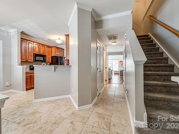 This stunning townhome has it all! Nestled in a highly sought-after community, this rare 3-bedroom gem features a sunroom and is situated in a private location with no other townhomes facing the rear. As you enter the neighborhood, you'll be greeted by charming tree-lined streets and picket fences, with sidewalks and streetlamps. Inside, the first floor boasts 9 ft. ceilings, a beautifully updated kitchen with Travertine Tile flooring,ceramic tile backsplash, and granite countertops. Refrigerator, washer and dryer stay! The main level also features elegant LVP flooring. All 3 bedrooms are on the second floor, with the primary suite featuring a tray ceiling, walk-in closet, and updated bathroom. Conveniently located minutes from I-77, shopping and dining. Don't miss the opportunity to see this immaculately kept end-unit townhome, and one of the largest in Manchester Village.