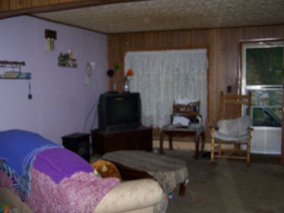 Cared-for single under $50,000! 4 bedrooms with closets, nice eat-in kitchen, large bath and a walk-out, daylight basement. Basement is divided into 2 rooms + furnace area + 1/2 bath....could be office or family room. Covered deck off the back with pretty views. Vinyl siding and carpet will do wonders for this home!