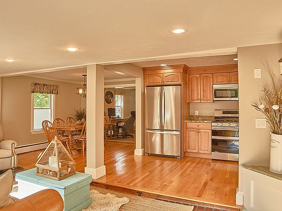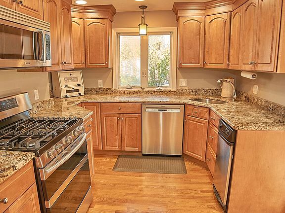HAWKINS STREET will bring you to a charming, well-maintained home with privacy. Don't let the Commercial St address make you think the world is too busy!! Live in peace and quiet with privacy yet WALK TO THE TRAIN in 3 minutes. This home is full of charm and care. An updated kitchen with granite countertops opens to a warm sunny family room with a slate floor and soapstone woodstove. A large eat-in area is part of the kitchen! Huge mudroom connects garage to kitchen. Open staircase makes this home feel spacious. The master bedroom has its own upgraded bathroom and walk-in closet. Full bath on the first floor with a jacuzzi tub and conveniently located washer and dryer. Newer GAS heating system, newer architectural roof, newer water filtration system. Yard is completely fenced in, including a separate fire pit area, new large private stone patio w shed. Separate off-street parking area (on Hawkins Ct) just installed with 6 parking spaces. Great attention to detail everywhere!