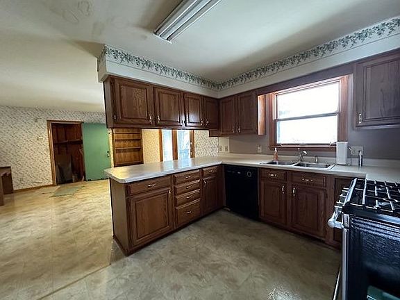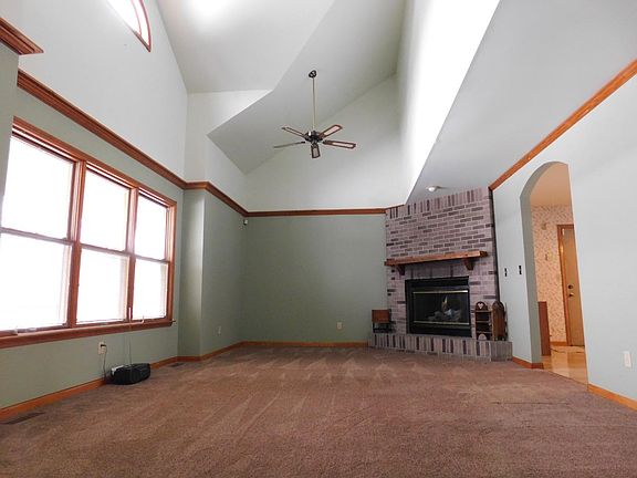 BEAUTIFUL 1.39 ACRE LOT! Covered front porch welcomes you to this 3 bedroom, 2.5 bath 1.5 Story. Spacious great room offers corner brick gas fireplace and vaulted ceiling with 2 ceiling fans. Large eat-in kitchen has oak cabinets, snack bar, pantry and door to wood deck. All appliances stay including washer and dryer! Half bath with pocket door off kitchen. Convenient main level laundry. Main level Owners Suite has cathedral ceiling, 3 small closets plus walk-in closet, make up table with sink plus huge private bath with whirlpool tub and separate shower. 2 good sized bedrooms upstairs and full bath with skylight. Full unfinished basement. NEW ROOF SEPTEMBER 2023 with transferrable warranty. Storage shed. Aprilaire humidifier. Pella windows with built-in blinds. Whole house fan. Natural gas generator. Alarm system. 2 car attached garage with opener. Don't miss this!