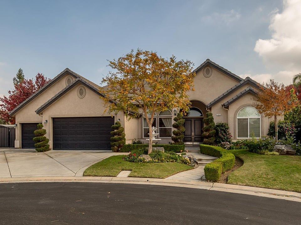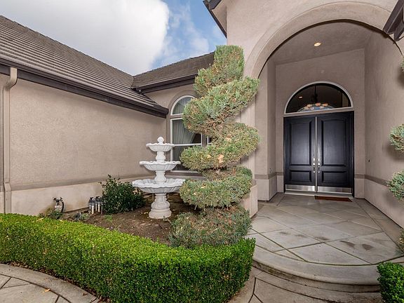 Opportunity knocks for a prime, private cul-de-sac location in Gated Copper Ridge Estates across the street from Fugman Elementary! Breathtaking views of the gigantic lush backyard from the foyer of this single level showplace! Massive kitchen w/large center island features dark cabinets w/built-in stainless refrig, wine refrig, 6 burner gas range & double ovens. Oversized Isolated 5th Bedroom w/huge walk-in closet would be ideal gameroom/office/gym/guest suite! Master Suite has fireplace & spacious closet in the elegant bath area. Upgrades include granite counters w/travertine backsplashes throughout & newer plush carpeting. RESORT living inside & out with an oversized private East facing backyard featuring lots of grassy area, fenced pool w/waterfall, large covered patio, built-in BBQ, separate Garden area & side concrete area behind iron gate for extra parking! Convenient location to the bike trails to Woodward Park & accessibility to Clovis Schools!!!