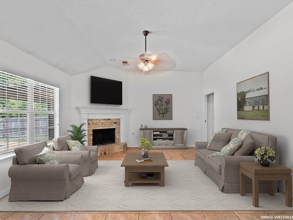 This freshly updated 3-bedroom, 2-bath home with a 4th bedroom/bonus room offers the perfect blend of comfort and style. The open, light-filled layout includes a spacious hearth room, casual dining/breakfast room, and an updated kitchen with modern finishes and arched openings. Fresh flooring, paint, HVAC updates and 2 year old roof make this home move-in ready. Primary bath has separate tub and shower, double vanity and walk in closet. Step outside to your private backyard retreat featuring a sparkling in-ground pool with new liner and pump, wood privacy fence, and a covered patio ideal for relaxing or entertaining. The property backs up to a wooded lot, offering added peace and privacy. County taxes only!
