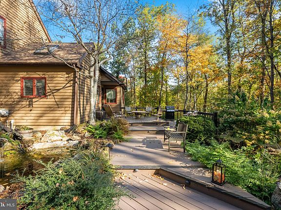 Welcome to this custom-built home in the heart of historic Birchrunville in West Vincent Township—an area known for its picturesque charm, manicured properties, and elevated rural elegance. Stroll to the beloved Birchrunville Café along quiet lanes lined with classic farmhouses, including a nearby alpaca farm the sellers’ grandchildren will dearly miss. Set on a stunning and usable 5-acre parcel, this property offers sweeping, unobstructed views of neighboring horse farms and rolling hills with multiple outdoor decks and patios to sit back and enjoy the quiet. The home was designed with care and attention to detail with abundant master-craftmanship woodworking details and has been maintained in immaculate condition. From its soaring ceilings and floor-to-ceiling stone fireplace in the family room to its open-concept layout, this residence exudes warmth and functionality. Enter the front door and immediately you will be captivated by the two-story family room with abundant large windows and a soaring floor-to-ceiling fireplace. This room is the heart of this special home and has lots of storage and butler pantry with a built-in wine refrigerator. Watch the game or play card games and enjoy the pretty views from the rear deck. There is an updated powder room to the right of the front entrance. To the left of the FR find another grand room with another stone fireplace, this room can be used for many purposes but currently being used as a peaceful office environment with custom builtins and beautiful views of the expansive property. Follow the flow of the house to the right and there is first floor laundry and a large kitchen with custom handmade Shakers-style cabinets, a gas cooktop, double oven, a large island, updated backsplash and soaring cathedral ceiling with light from the palladium light, the skylight and window over the sink to view the natural surroundings of the property. Next to the kitchen find a side door to the more outdoor deck space and a large dining room. The generously sized dining room is wrapped in windows on three sides, creating a sunlit gathering space. Upstairs, two spacious bedrooms offer ample closet space and share a beautifully updated bathroom. Throughout the home, you’ll find fine custom millwork, including thoughtfully integrated built-in shelving lining the stairway to the lower level—ideal for displaying books, art, or keepsakes. The finished lower level offers endless possibilities with open, light-filled spaces perfect for entertaining, crafting, fitness, or extended family stays. It includes a private bedroom and full bathroom, making it an excellent in-law or adult child suite. There's even a naturally-chilled wine cellar (or potential darkroom). This level has walk-out access to the beautiful rear yard. As an added bonus, there is a discrete paver driveway access to the lower level from the paved driveway which is handy for someone accessing the bedroom on the lower level. Outside, mature trees have been selectively cleared to open the landscape, creating an airy, expansive yard while retaining a sense of privacy and connection to nature. The oversized 3-car garage features a storage loft, and a newer shed adds extra space for tools and equipment. This is more than a home—it’s a lifestyle in a truly unique and special location. With exceptional views, thoughtful custom design, and a warm, vibrant community, this Birchrunville property offers an unmatched opportunity to live in one of Chester County’s most treasured settings. Schedule your private showing today and discover all that this extraordinary property has to offer.