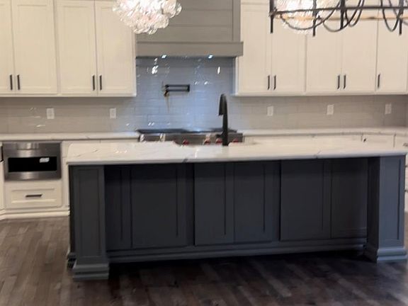 Chef's Kitchen: Equipped with wall-to-wall ceiling-height cabinets, double wall oven, and drawer microwave for convenient cooking. High-quality finishes add a touch of elegance.