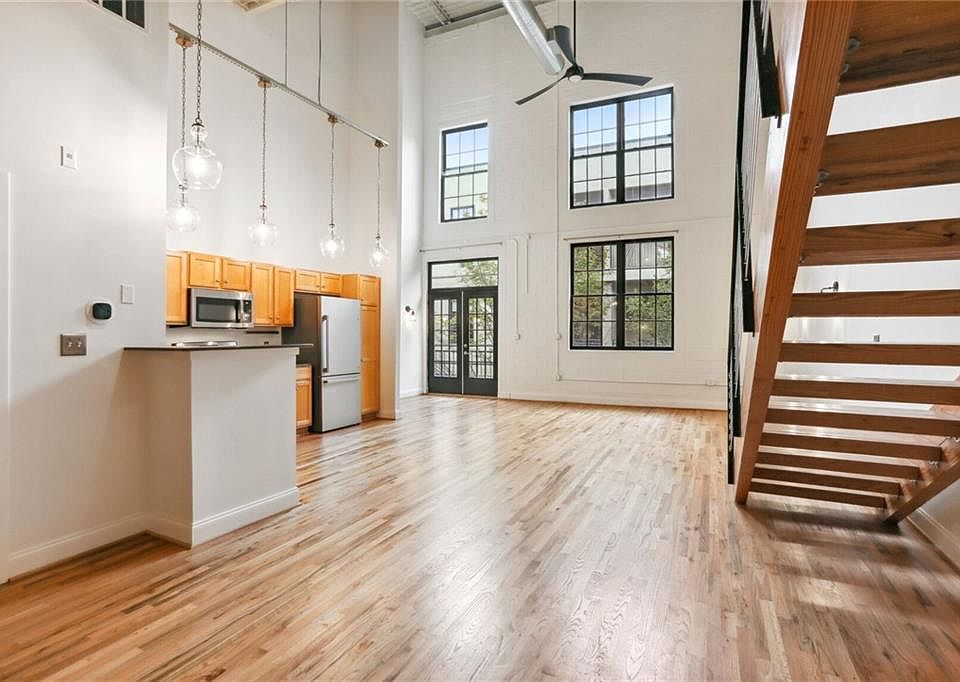 Discover urban living at its finest in this stunning 2-bedroom loft condo located in the heart of Roswell, Georgia. With its unique blend of modern design, open spaces, and a prime location, this property offers a lifestyle that's second to none. This stunning loft is one of the few two-story units in the community located in what was previously the gym of the high school. Renovated in 1998, this beautiful building features an ideal combination of city-like living while enjoying the 23 acres of land in the gated community complete with amenities including a pool, tennis courts, and a gym. The loft boasts hardwood floors throughout and features the exposed ceilings for a touch of industrial design. Natural light abounds due to the expansive windows overlooking the courtyard. The open kitchen features granite counters and stainless appliances. Both bedrooms have en suite bathrooms and large walk-in closets. The laundry room is conveniently located on the main floor adjacent to the primary suite. Admire the impeccable design details throughout, including updated light fixtures, designer barn doors to the primary suite, cable railing system on the staircase, and more! This stylish loft also features a new HVAC, hot water heater, freshly painted walls throughout, and several windows replaced for optimal living conditions! Living in this community offers immediate access to shops and restaurants on Canton Street and is directly beside Pure Taqueria. Come see this beautiful loft condo now before it is too late!