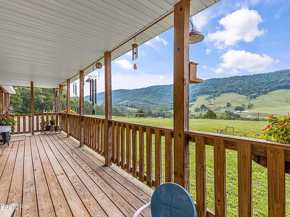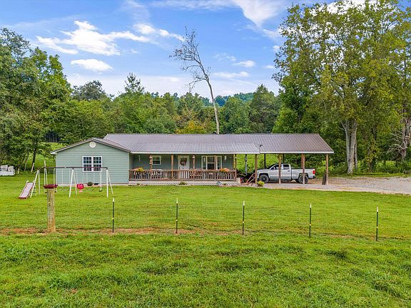 This must see 2 bed, 2 bath Ranch style home sitting on 27 +/- acres is a farmer or homesteader's dream. There is a creek that runs completely along the bottom of the property. The property comes equipped with a 40x90 Barn set up with Horse stalls, tack room and hay room, large equipment shed, 10x12 building with shed, 10x16 building, and an additional detached 18x20 carport. Property is perimeter fenced and cross fenced, having separate pastures ready for multiple types of animals. Property has a large amount of pastureland with some wooded areas perfect for hunting. Not to mention the beautiful, picturesque views of East TN from the front porch. There is also a large back porch suitable for entertaining.