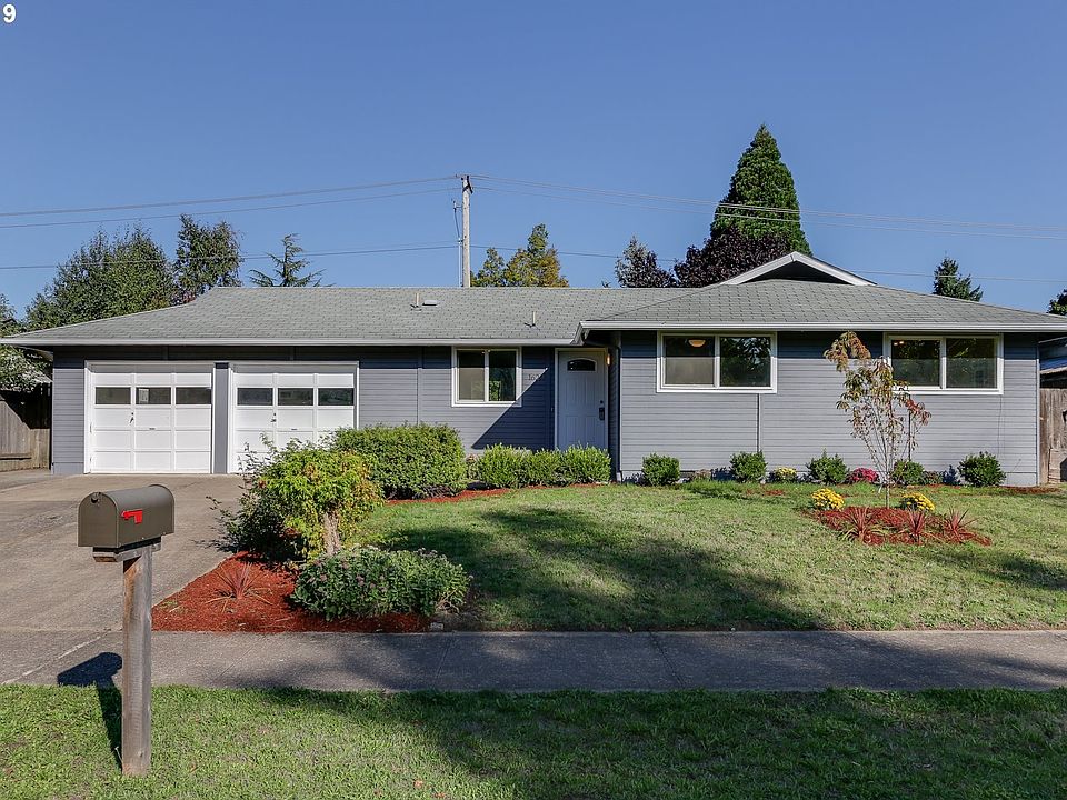 NEW PRICE, $249k! Nicely updated, move in ready, one level home featuring stylish, grey laminate flooring, pellet stove, quartz kitchen counters, large yard, two car garage, & three bedrooms! Near schools, parks, & shopping. In a very quiet area of Eugene on a low noise, low traffic street. Approx 1000 SQFt.