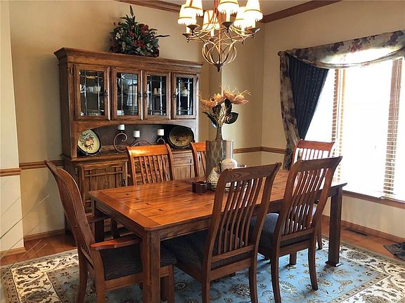 Let the family spread out in this 4050 SF (total) Clive 2 story.The recent improvements to this home make it an exceptional value: $50,000 project including new 4 season room off the back with freshly poured new patio beneath, $20,000 landscaping design and install from Earl May, $9,000 garage update with new epoxy floor and cabinets by Absolute Garage, replaced the entire driveway. (The list goes on). This home offers 5 bedrooms, 5 baths, incredible second floor laundry large enough to use as a 6th bedroom, gourmet kitchen with two ovens, wonderful wood paneled office, professionally finished basement with additional family room and nostalgic brass-railed brass-railed bar that is negotiable. 1000 SF of finish in lower level per seller.
