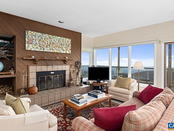 This 2 BR, 2 BA condo offers some of the nicest floor plans and most attractive locations you could find for a view condo at Wintergreen. End unit with a large wrap around deck to enjoy the magnificent views of the Blue Ridge Mountains and the Rockfish Valley below. Stunning sunrises. Built in 2021, the deck is trex with stainless steel railings and it wraps around all the way to the master suite. The floor plan is 1,283 finished square feet and is very open and bright. Enjoy the breathtaking views from all rooms in the condo but for the guest bedroom. The kitchen is large and open to both the dining and living room. The master suite is very spacious and features a walk-in closet and a good size bathroom with double vanities and a jacuzzi tub. This condo is also very easy to access from the parking lot, just one flight of stairs from the parking to the condo entry. Conveys turn key furnished and ready to enjoy. A location and floor plan like this are rare to find. NEW HEAT PUMP AND WATER HEATER JUST INSTALLED IN JAN OF 2023!