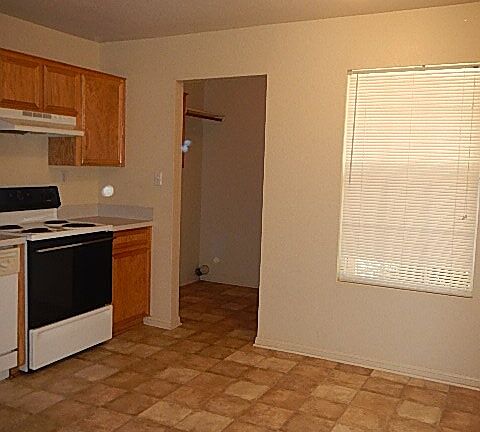 This charming home offers a welcoming layout with a kitchen featuring custom cabinets and essential appliances. The rooms are comfortably sized, providing ample space for everyday living. The bathroom includes a convenient shower/tub combo. A dedicated laundry room with washer/dryer hookups adds to the home's functionality, making daily chores a breeze.