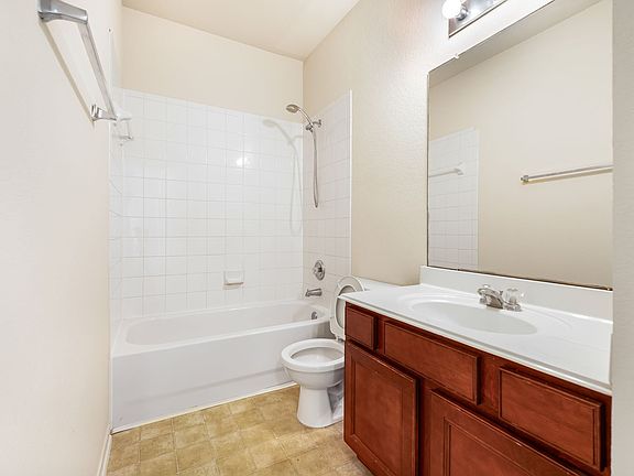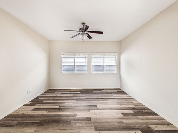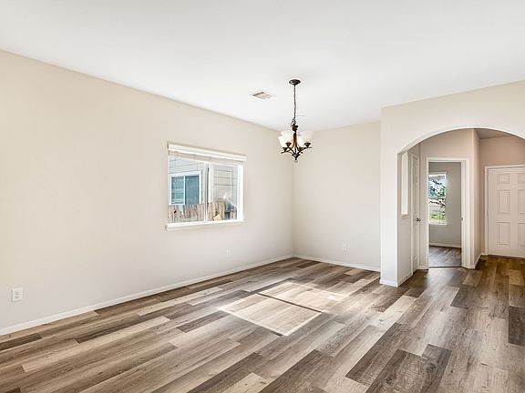 Charming 3-bedroom, 2-bath single-family home with a spacious 2-car garage. The exterior features a clean, traditional look with a private fenced yard. Inside, enjoy bright, airy rooms with large windows and updated wood-style vinyl flooring. The home offers a functional layout with a comfortable living space. The primary bathroom includes a dual-sink vanity, soaking tub, and separate shower. Fresh, neutral tones throughout make this move-in ready home ideal for modern living.