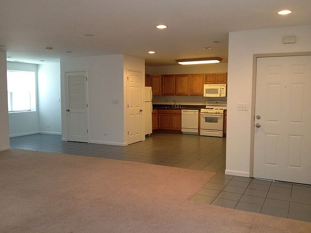 Spacious 2 bedroom apartment on the 2nd floor above Laundromat. Fresh & Neutral decor. Eat-in kitchen includes white appliances, oak cabinets & pantry. 2 Large bedrooms with walk-in closets and 1-1/2 baths. 6-panel white doors and trim. Freshly painted. Only 2 apartments in the building. Hot water included in rent. 2 blocks to Metra UP-North train line and 1/2 mile to Foss Park and Lake Michigan.