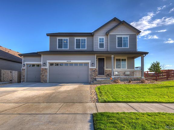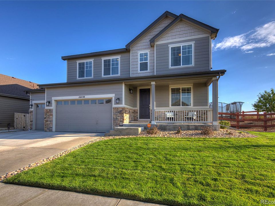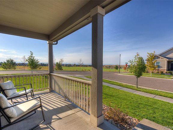 Nearly new home in Buckley Ranch neighborhood overlooking Fronterra Park and within eyesight of Elementary and Middle School. Don't miss this opportunity to own this gorgeous home. It shows like a model home with beautiful wood hardwood floors, plush carpet and a main floor formal living room. Cozy up in the front of the gas fireplace in the oversized family room which is adjacent to a stunning gourmet kitchen boasting granite counters, upgraded cabinets, stainless steel appliances, gas cook top, double oven, walk in pantry and an island big enough to seat five comfortably. Dining area is light and bright with lots of windows and leads to a covered patio perfect for entertaining. Four bedrooms and a loft located upstairs with enough room for everyone to have their own space, plus a centrally located laundry room. Master bathroom is spacious and open with double sinks, granite counters, shower and large soaking tub, bath leads to large walk in closet. Secondary bathroom is complimented by double sinks and granite counters. Basement is unfinished and ready for a buyer to turn into guest rooms, a home gym, office, rec space or more! From the front porch of this home you can see a large park across the street with a playground, walking trail, basketball courts, large grass field and skateboarding area. On top of that you have mountain views and can see the local Elementary and Middle schools. Convenient access to E470, I76 and close to DIA. This home has it all!