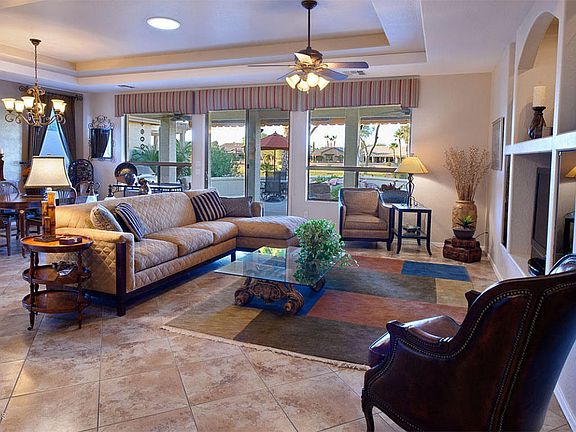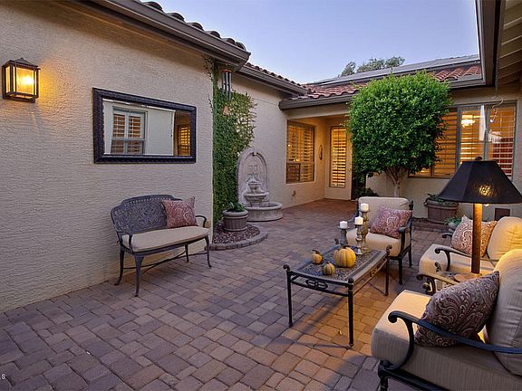 Great Location-Great Home-Great Price! Private courtyard welcomes you to this popular floor plan with guest casita. Fabulous outdoor living space: extended patio with golf course, water & mountain view, fire pit with seat wall, built-in grill, & built-in spa. The Estate kitchen features abundant upgraded cabinetry, roll out shelves, GRANITE counters, distinctive tile backsplash, & large island. Spacious Great Room with coffered ceiling, custom media center (TV stays) & large windows that showcase the gorgeous view. Spacious Den. Large master suite w/patio access has large shower, dual sinks & huge walk in closet. Guest casita with private entrance, spacious bedroom & full bath will delight guests! 2 car garage & golf cart garage. Too many upgrades to list...Must See! Ready to enjoy!
