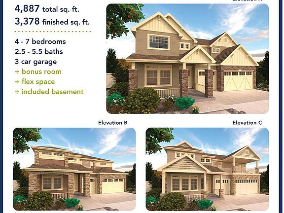 The Boulderado home is a wow at every level. This open floor plan defines luxury with a grand first floor level that boasts an open layout flex space for a study and a grand family room that opens to the spectacular gourmet kitchen with a huge kitchen island that can host the whole family. The kitchen comes with stainless steel appliances with gas range and double ovens, gorgeous Ash Gray Quartz counters that surround the kitchen and Cameo Pearl Quartz eat-in island, 3x6 white brick laid back splash, Regency 7" plank wood floors, and Maple Java cabinetry with roll-out shelving at the base cabinets! Make your way over to the larger great room and cozy up to the beautiful fireplace! Upstairs comes included with 3 additional secondary bedrooms, bonus room and a grand master bedroom with 5 piece bath and large walk in closet! Walk down stairs to the sprawling basement with 1500 square feet to choose how to use! Call our Inside Sales Team Today!