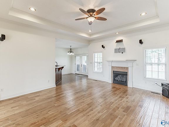 - Features: Fireplace, Tray Ceiling(s), Vaulted Ceiling(s), Wood Floor