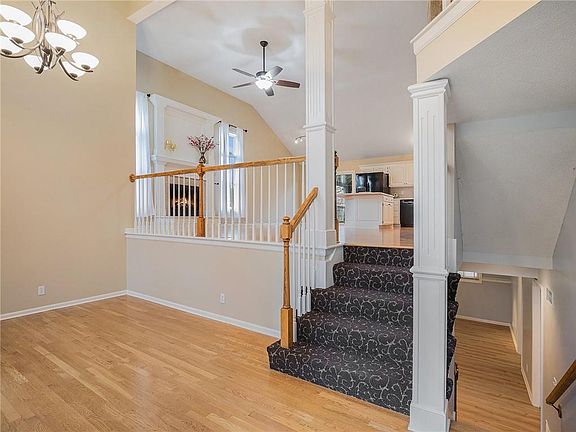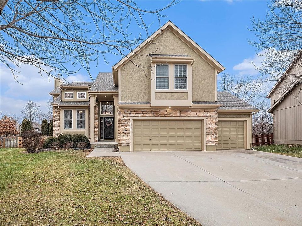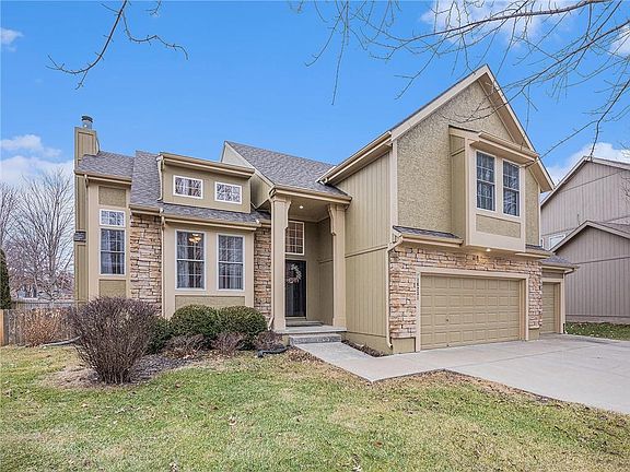 Open the door to large, open spaces, beautiful hardwood floors and soaring ceilings with tall windows for lots of natural light. Welcome to the expanded version of the Hastings French Country floor plan with 5 bedrooms, 3 full baths and 3 car garage in Olathe. Updates include a brand new roof, hot water heater less than a year old, and HVAC only 4 years old. Spacious master suite with generous walk-in closet, beautifully updated master bath with large soaker tub and separate shower. Recently remodeled daylight lower level with expansive family room, 5th bedroom, and 3rd full bath. Plenty of storage space with unfinished sub-basement and an additional 334 sf of space that can be finished on the lower level. Main level laundry room conveniently located off the kitchen. Get all settled before Spring so you can enjoy the .27 acre fenced backyard with sprinkler system, two gazebos, stamped concrete patio and large deck. The deck gazebo can be fully enclosed with the mesh screen curtains or privacy curtains and the deck has built in sun shades. Great cul de sac location just a couple blocks from the subdivision pool and Brougham Park. Don't miss this one!