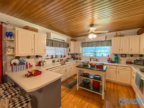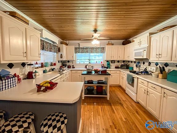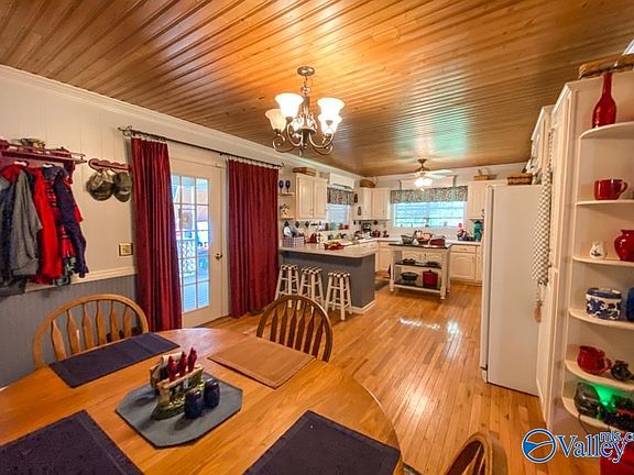 Looking to downsize?? You will love this 2 bedroom 1 bath home. Features 3/4" hardwood floors, crown molding in every room, tongue & groove ceiling in the kitchen & dining area, large bathroom and plenty of storage space. This home has a front deck and back deck with covered walkway from the back deck to the carport/storage building that has elect and water already. There is also a 18x20 metal workshop/garage with a roll up door. The carport/ storage building could be fixed up for a man cave or small apartment.