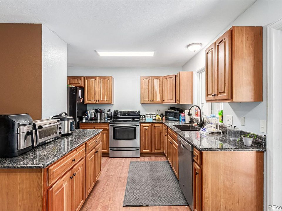 On the main level, you’ll discover a spacious primary suite with built-in closet shelving and a ¾ bathroom featuring an updated granite vanity, your perfect end-of-day retreat. Two additional bedrooms and another full bathroom with an updated granite vanity complete this level.