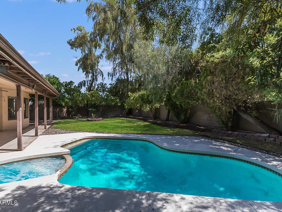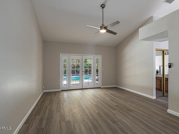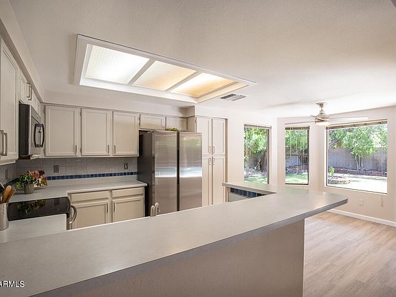 Excellent single story remodel located with tons of on-trend features and updates! Eat-in kitchen incorporates tons of counter and cabinet space, ceramic tile backsplash, stainless oven, and a storage pantry. Other features include soaring vaulted ceilings, great room with double sided fireplace, 2 car garage, 2 month old AC unit, new fans, fresh interior paint, and brand new LVT flooring throughout. The master suite has private back patio exit and a full bathroom with dual sinks and separate shower and tub. The spacious backyard has an extended covered patio with tile pavers, green grass lawn, sparkling pool and spa, and a large side yard.