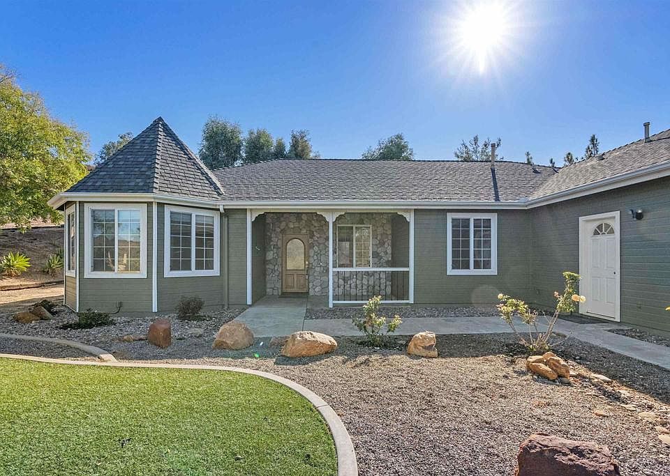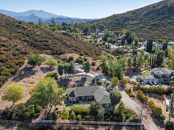 Nestled in the tranquil San Diego Country Estates community, this meticulously upgraded 3-bedroom, 2-bathroom home (plus additional office) sits on a private 1.1-acre lot with stunning mountain views. This single-story residence features remodeled bathrooms, owned solar, updated paint and flooring, and beautifully landscaped outdoor spaces. The three-car garage provides plenty of room for vehicles and storage, while inside, the bright, open living space with high ceilings and abundant natural light welcomes you. The kitchen is an entertainer’s delight, with bar-top seating, dual islands, a wine fridge, ample cabinetry, newer stainless steel appliances, and oversized windows in the dining area. The primary bedroom is a peaceful retreat with a barn door leading to a remodeled ensuite bath featuring dual vanities, a walk-in shower, and a spacious closet. Two additional bedrooms and a versatile office/den offer comfortable living with easy access to a second full bath. The property’s private lot includes mature fruit trees, a well, and no homes behind, offering exceptional seclusion. With RV parking and room for a pool, ADU, or more, this space has endless potential. Enjoy country living with community amenities such as horse trails, equestrian facilities, pools, tennis and pickleball courts, golf, parks, and hiking trails. Embrace the beauty and charm of San Diego Country Estates—make this dream home yours today!