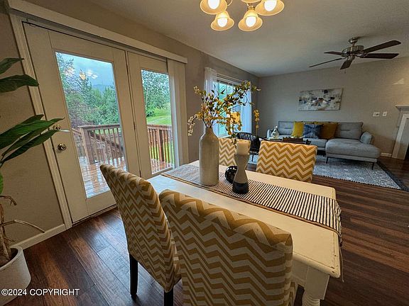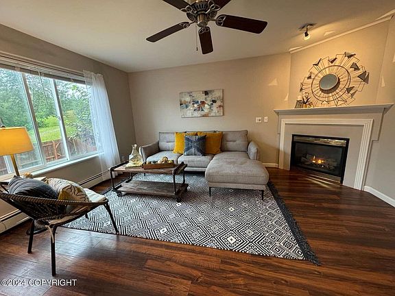This charming 3-bedroom, 2-bathroom townhome backs up to a serene greenbelt behind Town Park, offering a perfect blend of urban convenience and natural beauty. The fenced backyard features a two-year-old deck with stunning mountain views, ideal for outdoor relaxation and entertaining. Inside, a cozy fireplace adds warmth and ambiance to the living space.The property includes a two-car heated garage and is conveniently located close to JBER, is located near trails and is within walking distance from a grocery, post office and the public library.