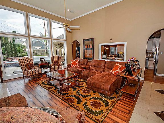 For the outdoor entertainer!! Nestled on CUL-DE-SAC OVERSIZED LOT this 1 Story stucco beauty has exquisite features. Fabulous layout/dual master quarters/2 living rms or gamerm/huge island kitchen w/ beautiful lighting/convection oven/wine racks. Floor to ceiling windows for enjoying panoramic views of your private pool/spa/covered patio/outdoor kitchen/firepit & extensive landscaping. Custom surround, double tier tray ceilings all over! Minutes to EXXON campus/Grand Prkwy/Raveneaux CC - HURRY!!
