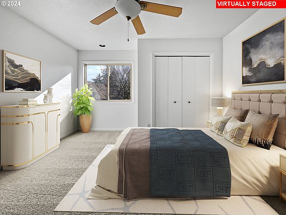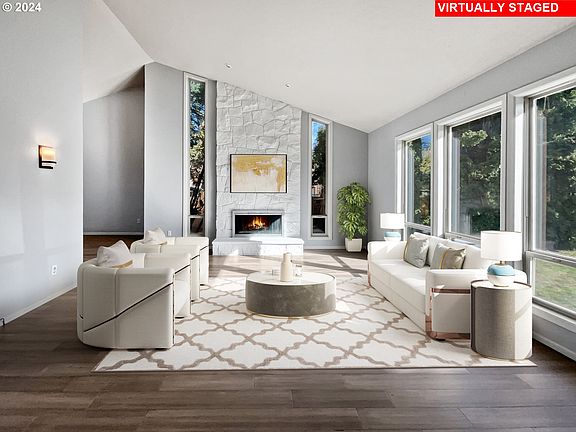 Welcome to this charming home with a cozy fireplace, featuring a natural color palette throughout. The flexible living space allows for endless possibilities in other rooms. The primary bathroom boasts double sinks and good under sink storage. Step outside to a fenced backyard with a covered sitting area, perfect for enjoying the Fresh Exterior Paint. Partial flooring replacement in some areas adds a modern touch to this well-maintained property. Don't miss out on this fantastic opportunity to make this house your home! This home has been virtually staged to illustrate its potential.