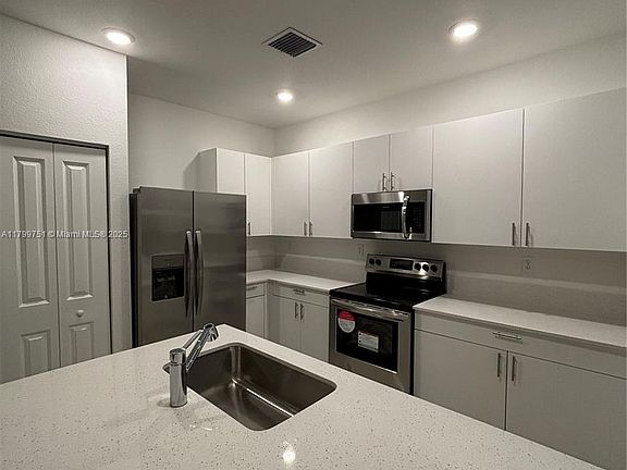 Modern white cabinetryBlinds in all windowsQuartz countertopsWasher and dryerStainless steel appliancesOpen kitchen