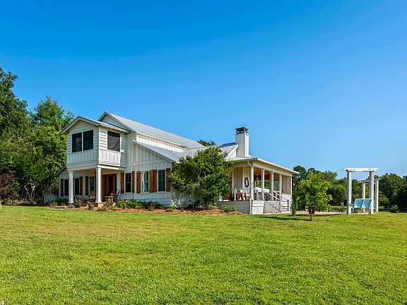 5 acres of beautiful Oaks, rolling pasture, amazing sunrises and privacy are just a few reasons this home is spectacular. Walking through the custom heart pine entry doors, you enter the home that is covered with rustic beams, shiplap walls and old antique floors. The kitchen has plenty of space to entertain and has floor to ceiling cabinets, which includes built in refrigerator freezer, 48” cooktop, double oven, microwave and ice maker. Looking from the kitchen is the inviting living room with vaulted antique wood ceilings accented with rustic beams that show off the focal point of the room, a beautiful over-sized wood burning fireplace with a rustic beam as the mantelpiece. The primary bedroom has vaulted ceilings and the same rustic floors which also have his and her sinks, soaking tub, separate shower and walk in closets. With 3 bedrooms down you also exit the living area to an entertainment porch with a small bar area that overlooks a large brick patio great for entertaining or just a great place to have a relaxing peaceful evening. The upstairs room has a separate entry and is around 1200 square feet with an open living room, kitchen breakfast room with a separate utility room and a enclosed balcony off the bedroom. The upstairs kitchen has a 48 inch gas cooktop, built in wall oven, microwave, refrigerator and dishwasher. The outside barn is 36 feet X 48 feet with 3 horse stalls, tack room and several other rooms if you wanted to keep horses or even convert it into a workshop. The upstairs was originally built in 2013, while the addition to the rest of the home was added on in 2018. If you want a custom home with privacy, peaceful and a place to have horses or a place to let your kids run free this is your home. All Information provided is deemed reliable but not guaranteed. Buyer or buyer’s agent to verify all information.