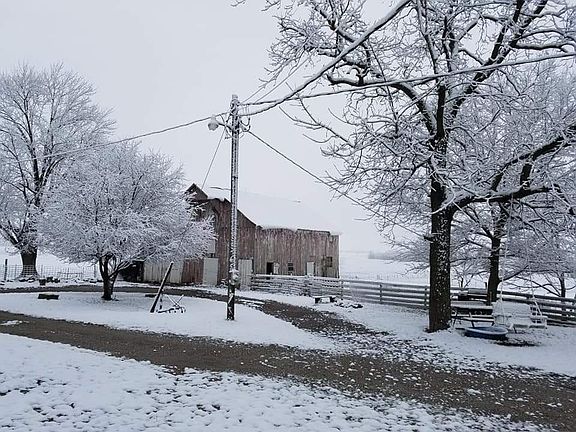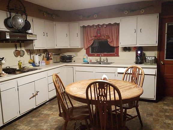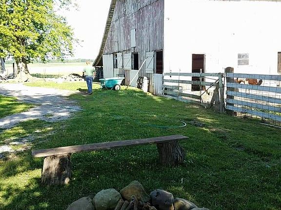 Ranch home, brick front, w/ white wood sides 1 1/2 car attached car garage, very large nastolgic barn , grain barn w/ new barn red tin , small barn , &2(nice size ) hen houses