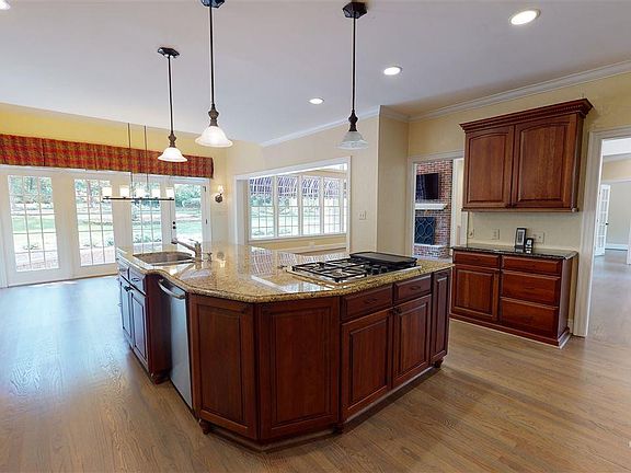 HUGE PRICE IMPROVEMENT!! One Owner Brick Front 4 Bedroom/3.5 Bath home on lrg wooded beautifully landscaped lot in Adams Mountain a Gated Community. Open Floor Plan w/Hardwoods on Entire 1st Level, Lrg Kitchen/Breakfast Area w/Granite Top Island, Gas Cooktop, Double Wall Oven, Custom Glazed Maple Wall Cabinets. Two Story Family Room w/Masonry Gas Log F/P & Built Ins; heavy wood trimwork. First Floor Vaulted Owner's Suite and Lrg Owner's Bath w/Walk In Tile Shower, Heated Floor, Det Garage, NEW Roof 2019.