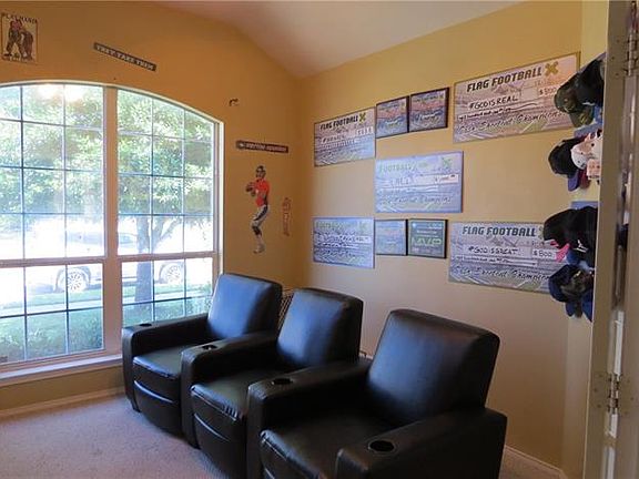Eagle MT-Saginaw ISD!! SPACIOUS 4 bedrooms plus Study with French Doors ~ 2 Living Areas ~ Open Floor Plan ~ Home Backs To Greenbelt ~ Large Eat-In Kitchen with Island & Pantry ~ Black Appliances ~ Secluded Master Suite with Garden Tub and Separate Shower ~ Extra Shelving in Utility ~ Ceramic Tile & Laminate Floors ~ Wood Play House with Slide Stays with Home ~ Covered Back Patio ~ Assess to 2 Community Pools & Parks