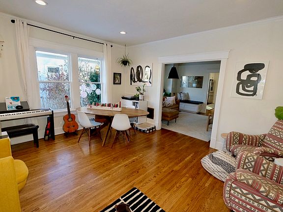 The 2 bedrooms downstairs are sizable with their own closets and both recieve excellent afternoon sun. One bedroom includes built in book shelves, perfect for an office or playroom.
