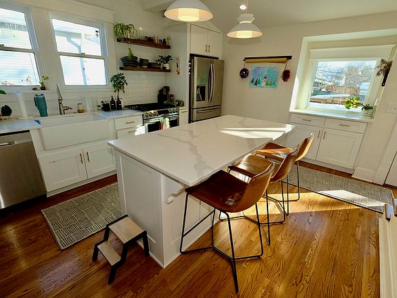 The kitchen includes quartz countertops, a sizable island with storage and room for 3 barstools. An entertainers dream, the kitchen has a large picture window that fully opens to the back yard. Deck has plenty of room to extend living outside - room for a dining table, a grill and 2-3 more seating areas.