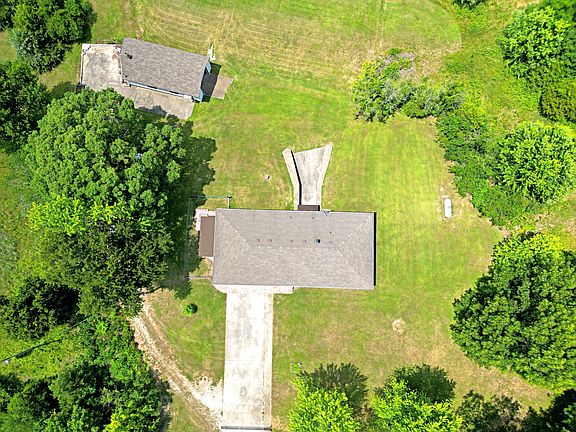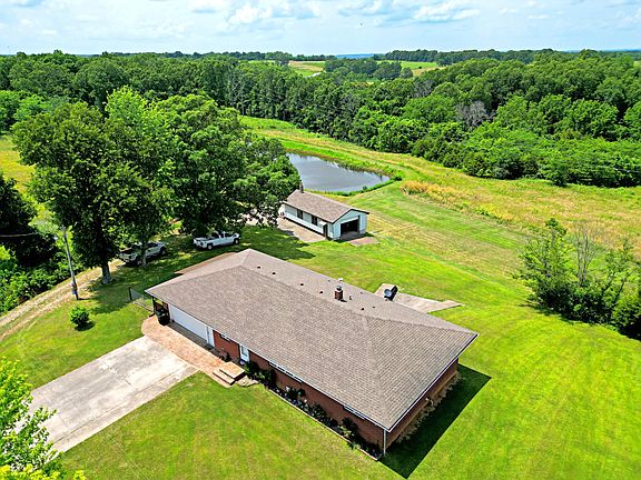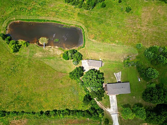 Welcome to your new 12 acre paradise! This property comes with everything you want. Outside is a large ~0.3 acre pond with an island accessible by bridge. The pond has been stocked with catfish, crappie, and bass. Between the pond and home is a large 20'x40' shop with power and concrete floors. The gently rolling, mostly open acreage is perfect for housing any animals you wish to have! Many large bucks have been spotted on this property as well. On the far north western corner of the property is an additional concrete floor older garage that could be used for storage. The home itself has been immaculately maintained. Inside is a kitchen with plenty of counter space and a large window area giving an open concept feel into the dining room. The large living area connects to the upstairs 2 bedrooms and 2 bathrooms. The master bedroom has its own private master bath attached. The attached garage is exceptionally clean and has a newer garage door, and an exterior door that leads to a covered and fenced patio area. The patio area is perfect for dogs or animals that you don't want roaming the entire property, as well as sitting out under the shade of the canopy and admiring the serine view of the property and the pond! Through the garage is a very wide staircase down the the full basement. Downstairs is a third non-conforming bedroom, a third bathroom, a massive family room, and an amazingly large all concrete room under the garage slab that doubles as a storm shelter! Additionally you will find the HVAC unit that was replaced in 2022 and has a 10 year transferable warranty, a built in wood burning stove for central air heat from wood, two good sized pressure tanks for the well, and a massive steel double door opening to the back yard. This portion of the basement with the large double doors is a good ''John Deere room'' area that allows mowers, SxS, or other equipment to be driven directly into the basement for climate controlled storage. Call for your showing today