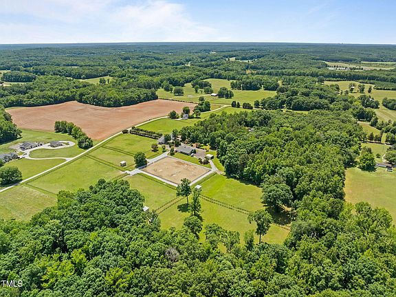 Luxury and Good Horse Sense come together perfectly on this 37 acre equestrian estate in the lovely rolling hills of North Durham County. Set on historic farmland in an equestrian oriented area, this sensible farm has it all for humans, horses and dogs. Featured in Architectural Digest in 2000, the MAIN and CARETAKERS homes were custom built by Leon Myers. Showcasing comfort and elegance, the MAIN home features open living and dining areas, 2 gas fireplaces, hardwood flooring, custom built-ins and designer finishes. Spacious kitchen with Thermador and high end appliances and granite. Optimal floorplan embraces both gathering spaces and privacy with a primary on each level, private bathrooms, a huge 4th bedroom/bonus/flex room and oversized garage. The beautiful screened porch oasis along with ample patio space, landscape lighting and a heavenly orchard perfect for outdoor events provide versatile outdoor living retreat options. The CARETAKERS home features heart pine flooring, vaulted open LR, fireplace, 2 BRs, 2 BAs, a full covered rocking chair front porch and 2 car garage. The equestrian facility is designed for the safety and comfort of your horses. Includes an elegant, center aisle, 8 stall barn with 6 12x12 and 2 12x14 stalls with exterior Dutch doors. Nelson automatic waterers, ceiling fans, hot/cold wash rack, paneled heated tack room, bathroom, laundry room, feed room, walk-up loft, generator, its own well and septic, insulated and built for good ventilation in summer and warmth in winter - all with a sitting porch. 180' x 220' fenced arena with superior footing. Heavy equipment shed, 2 lofted storage buildings for hay and bedding are extra tall for dump trucks and cleverly double as run-in barns on the backside. 8 large pastures - each with quality run-ins, irrigation pumps, separate fence lines, bridle paths and one small paddock for lay-ups or a naughty pony. The whole facility is laid out for ease of use and visibility. Properly maintained and upgraded - Main house has new Anderson windows and doors, new roof 11/2021, and new HVAC upstairs 5/2025. Guest house has new roof 5/2020, new water heater and gutters, Barn has new roof 11/2021, new gutters and water heater. Too many amenities to list. Fabulous functionality and design. *Covenants and restrictions previously held were lifted - no covenants or restrictions.