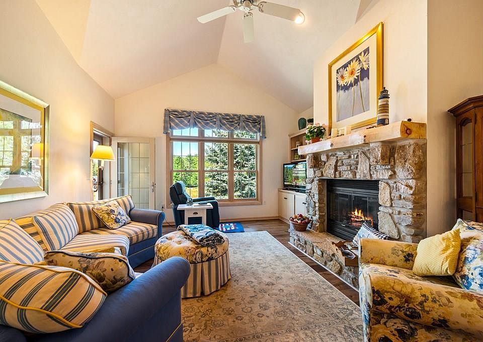 This charming 2 bedroom+ home overlooks a 5 acre prairie in sought after Cottage Glen. There are vaulted ceilings on the first floor , and a large/private walk out living area on the lower level; perfect for family, and or, guests. Landscaping for this home is included in the homeowner dues. Enjoy a short walk to the beach, marina, store. post office, and top tier restaurants. The property also features numerous hiking trails throughout the 40 acres. There is high speed internet, cable TV, and a fabulous rec center with indoor pool, whirlpool, sauna, and exercise room. Outside is an pool and 2 pickleball/tennis courts. Many of the furnishings are included in the sale, call listing agent for a complete list of exclusions
