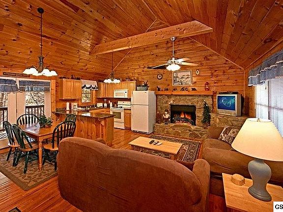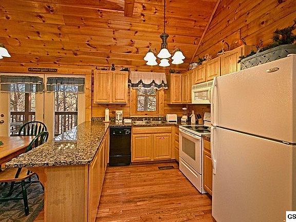 Nice local views. Close to everything. Beautiful resort cabin. Access to resort swimming and large play ground. 2 levels of decking with gas grill and hot tub. 2 kings suites with spa tubs. Game room with pool table and arcade game. Down stairs has bunk beds. Fully equipped kitchen. Square footage is taken from the tax records. Buyer to verify all square footage