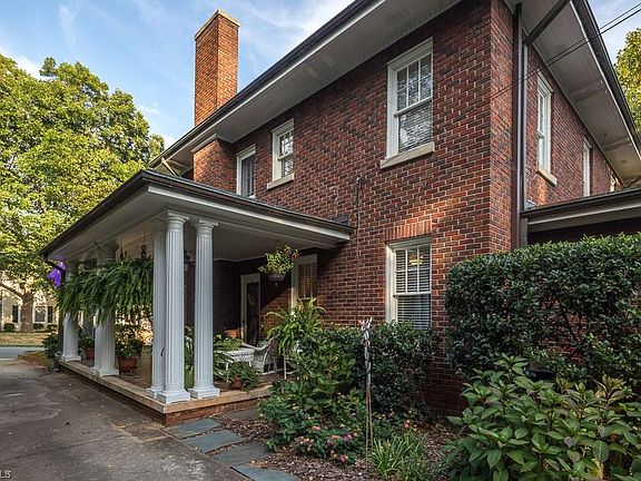 This remarkable home is true Winston-Salem, brick with a green tile roof! Locals will recognize it fondly as Miss Opal's house. Her father built it for her in 1927. Updated and ready to move in. Main level master and 4 bedrooms upstairs (one is currently used as an office), sunroom, wonderful kitchen, main level laundry/mudroom, 2 car detached garage with workshop, 2 zone HVAC, and don't miss that covered side porch.