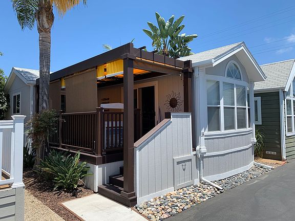 Cute and fully furnished! 2 bedroom, 1 bath single level manufactured home west of Coast Highway in Leucadia. Not only is this property a short walk to the popular Grandview Beach, but also to wonderful restaurants, shops and nightlife. Legoland, SeaWorld and the world famous San Diego Zoo are all options for things to enjoy during your stay. Two comfortable bedrooms (queen bed in each), plus a very comfortable queen size pull out sofa with a Sealy Posturepedic mattress in the main living area. Spend your evenings enjoying the beach air on your very private and spacious pergola deck with custom sunshades. The kitchen and dining bar are small but usable, and fully furnished. One assigned parking space in front of the property. The property boasts air conditioning, Wifi, and TVs in each bedroom and in main living area (ready to connect to your streaming service). Hot water on demand, beach chairs, towels, and some beach toys are furnished.