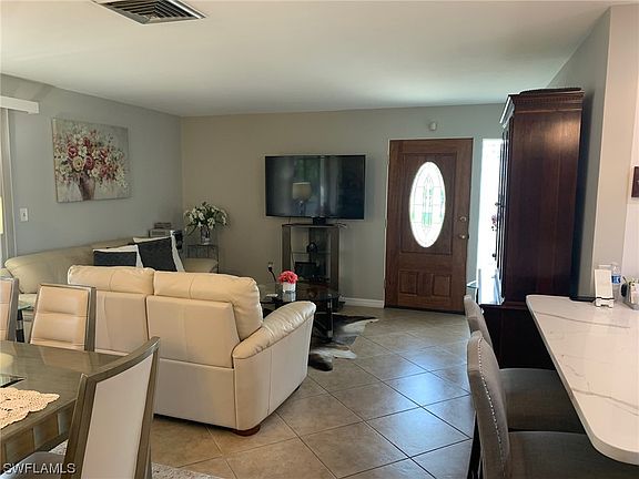 Huge price reduction!!! beautiful CORNER home with major renovations, great LOCATION, centrally located close to medical facilities, shopping and dining , 30 seconds to Colonial Blvd but yet nice and quiet. 10 min to Cape Coral. No worries about an old roof as this one got changed in 2021 along with gutters, lanai went through renovation as well in 2021, 2022 kitchen was remodeled including a nice set of brand new steel appliances, gorgeous granite in the breakfast bar etc. Garage had a big renovation including cabinets with granite!!! In house laundry!!!sale of home will include washer and dryer!!! owner loves gardening and it shows in her flower plants, and luscious mango trees , come take a look at this one you will not be disappointed!!!