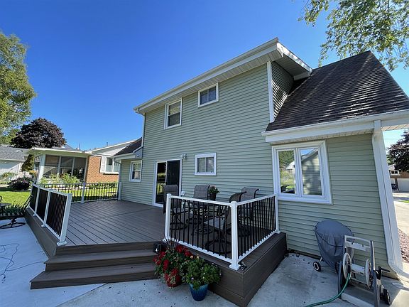 Updated and spacious 4 bedroom 2 bath home located on a dead end street. Inviting kitchen with cherry cabinetry, ample counter space, and window looking out to the friendly back yard. Desirable first floor bedroom and full bath with ceramic tile. Upstairs you will find three additional bedrooms and second bath. This home features an abundance of closets and storage space throughout! Newer maintenance free exterior including roof, siding, gutters, soffit, fascia, gutters, and aluminum wrapped windows. 2.5+ car detached garage that offers a large attic for more storage. Finished lower level has a bar and large rec room. Enjoy evenings out on the extra large patio deck while the kids play on the jungle gym! Conveniently located near schools, parks, and Lake Michigan. Newer furnace!