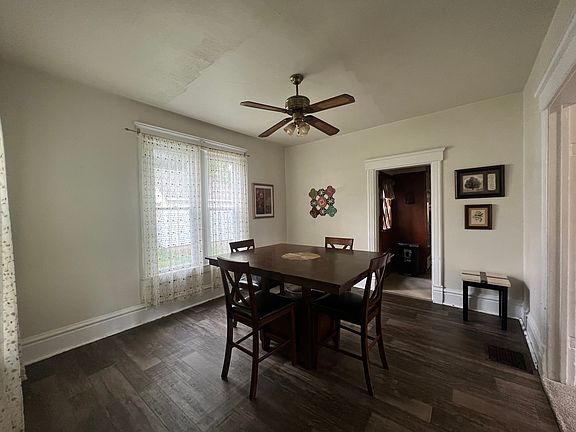 This 3-4 bedroom house with a one car detached garage has alot to offer with vinyl windows, new garbage disposal, stainless refrigerator, some newer flooring, 3 season porch in front, original woodwork. There is an extra room on main floor that could be an office or a bedroom if you added some french-doors. The kitchen has enough room to eat-in or use the formal dining room.